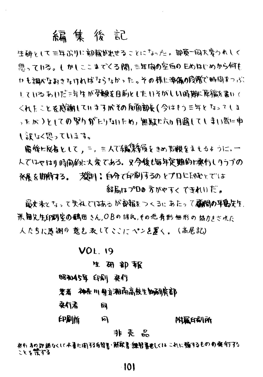 湘南高校 生研部報 第19号 1970年