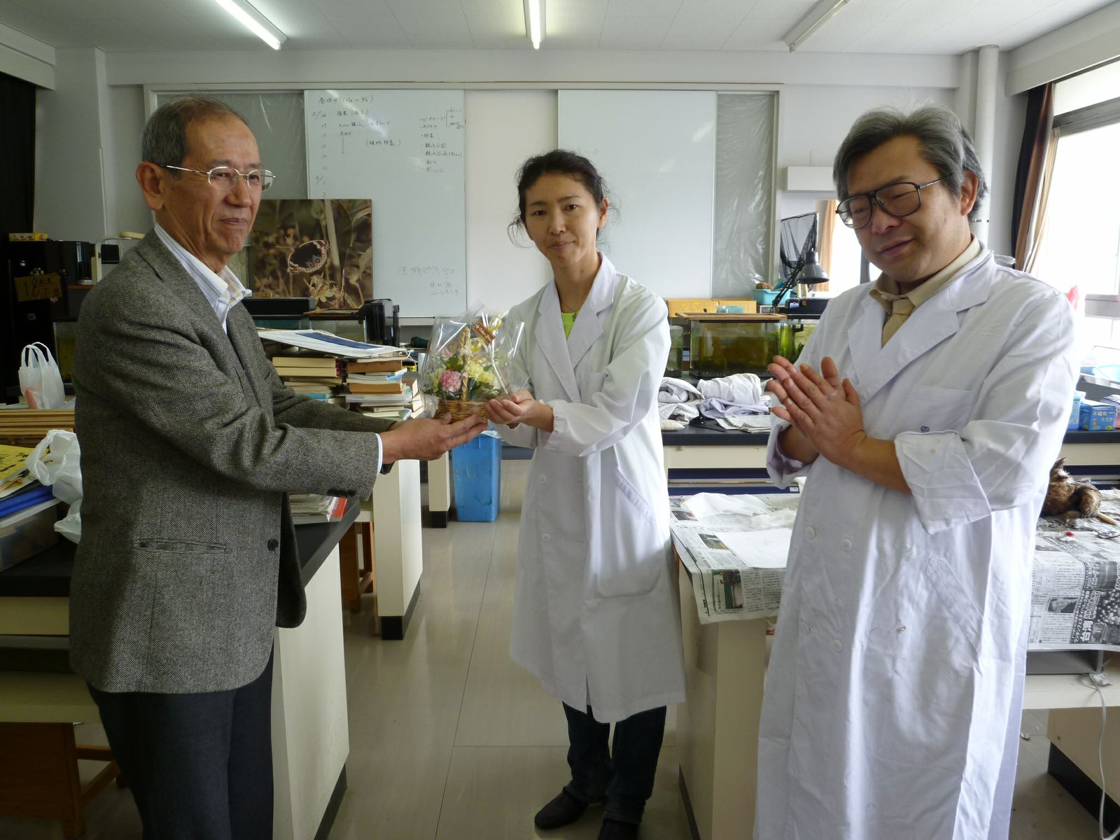 左から、山崎(33)、藤井先生、加藤(57)。